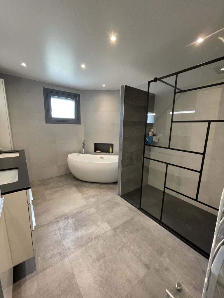 Douche à l’italienne, baignoire design, rangements discrets… chaque détail est pensé pour